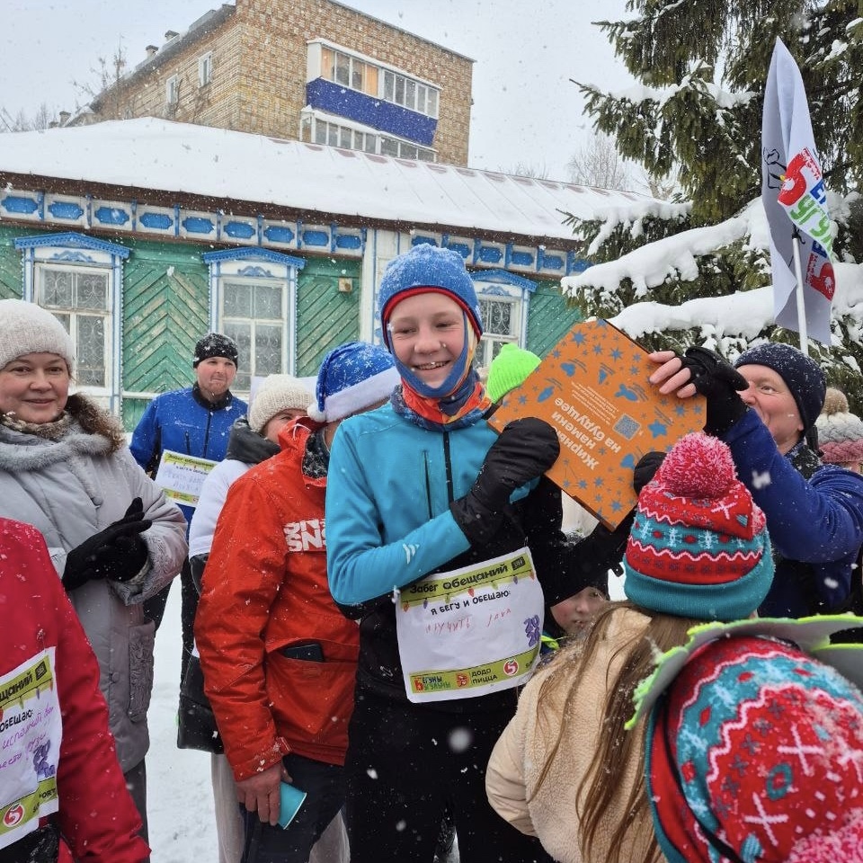 На дистанцию вышли и дети, и взрослые — многие в новогодних костюмах. Участникам предстояло преодолеть символичные 2026 метров. Сделать это можно было любым способом: бегом, шагом, на лыжах или санках. Главное — не скорость, а настроение и смысл.