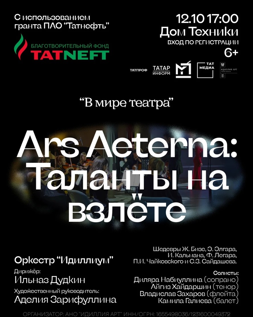 Организатором концерта выступает Центр «Идиллия Арт», в рамках грантового проекта «Ars Aeterna: таланты на взлете», миссия которого — поддержка и продвижение молодых талантов республики. Подробнее о проекте здесь.